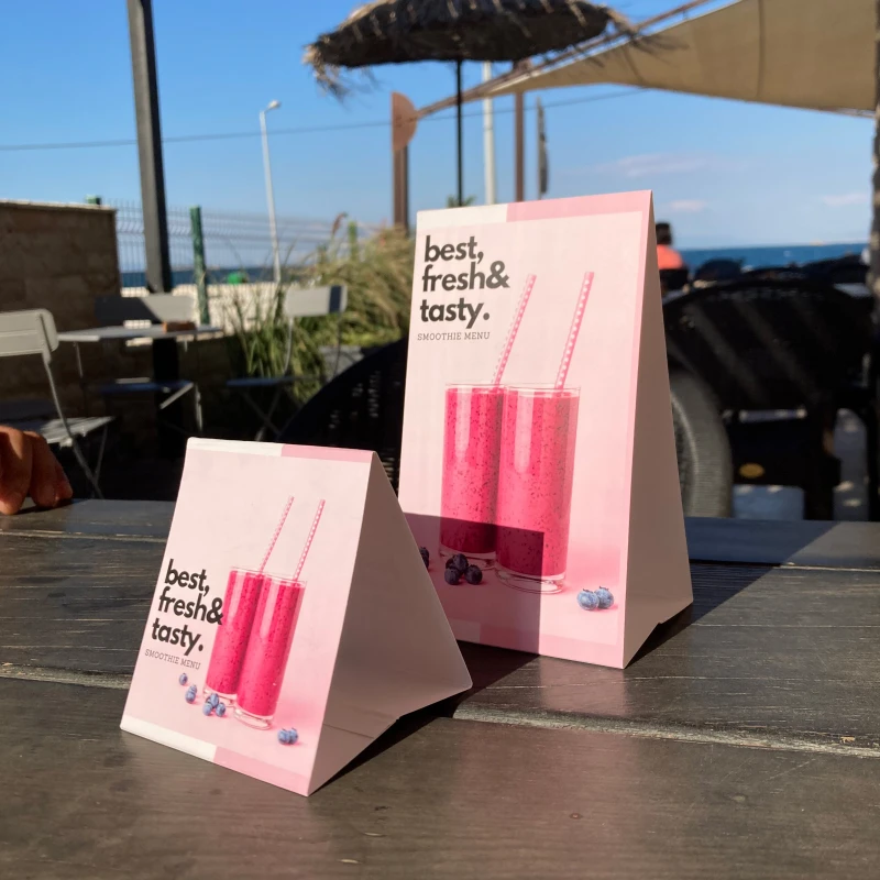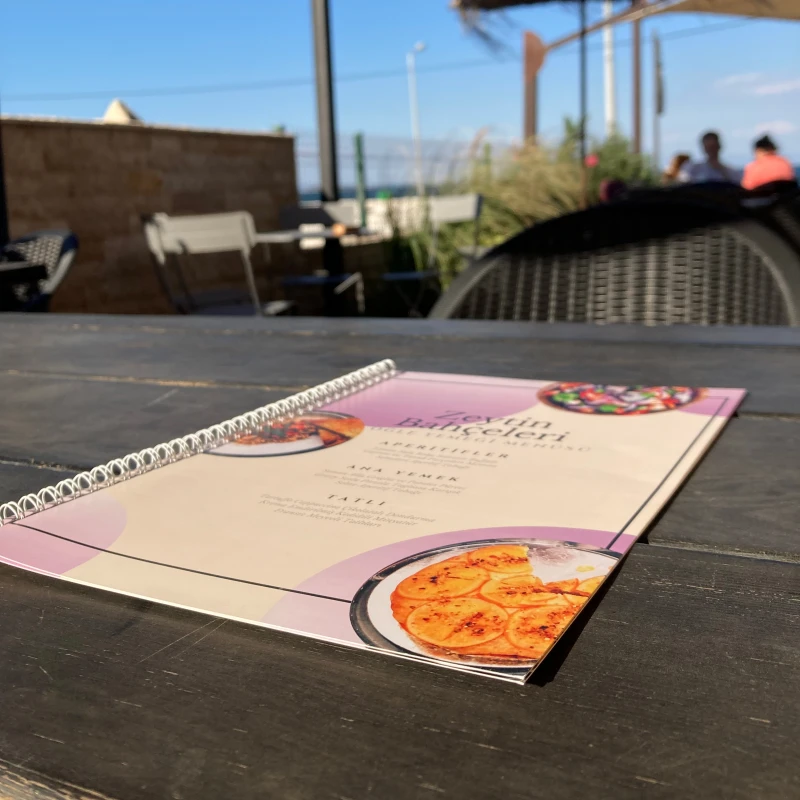 Menü genel olarak yiyecek ve içecek sektöründe kullanılan firma için önemli niteliklerde kullanılan ürünlerdir. Müşteriye iyi bir seçim sunmak ve görsel olarak da cezbedici olması firma adına büyük önem taşır. Bu bağlamda iyi bir görsel oluşturmak ve farklılık yaratmak için özenli olması faydalı olacaktır. Bu sektörde faaliyet gösteren restoran, kafe, bar, pastane gibi firmalar için menü tasarım mekânı yansıtacak özellikte olması gerekir. Müşteri istenen her şeyi rahatlıkla bulmak ve tercih yaparken zorlanmayacağı düzgün okunaklı bir tasarımda olması gerekir. Menü baskısı olarak birçok çeşit mevcuttur. Mukavva baskılı, deri üzerine baskı ahşap üzerine baskı. Vidalı olarak birçok seçeneği bulunur. İyi bir kalitede ve dayanıklı baskı çeşitleri ile firmanın iyi bir şekilde yansıtılması için çalışmaktayız. Müşteri talebine ve isteğine uygun farklı fikirlerle üretime sunduğumuz menü baskı çeşitleri ile iyi bir hizmet başlangıcı sunulabilir. Farklı grafik tasarımları, değişik yazı stilleri ile de müşteri için değişik bir algı oluşturabilirsiniz.